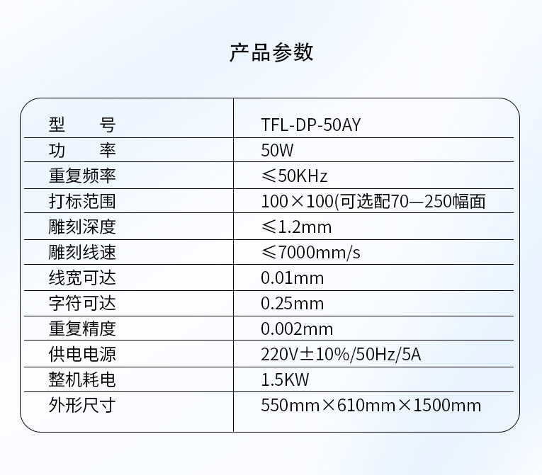 成熟的激光器側(cè)泵技術(shù),光束質(zhì)量佳,激光功率穩(wěn)定,更適合手機金屬殼、手機按鍵、等大多數(shù)通用激光打標產(chǎn)品使用,整機功率1.5KW,每小時僅需1.5度電;半導(dǎo)體發(fā)光模塊壽命可達13000小時,改變了傳統(tǒng)燈泵打標機經(jīng)常更換燈管的缺陷。